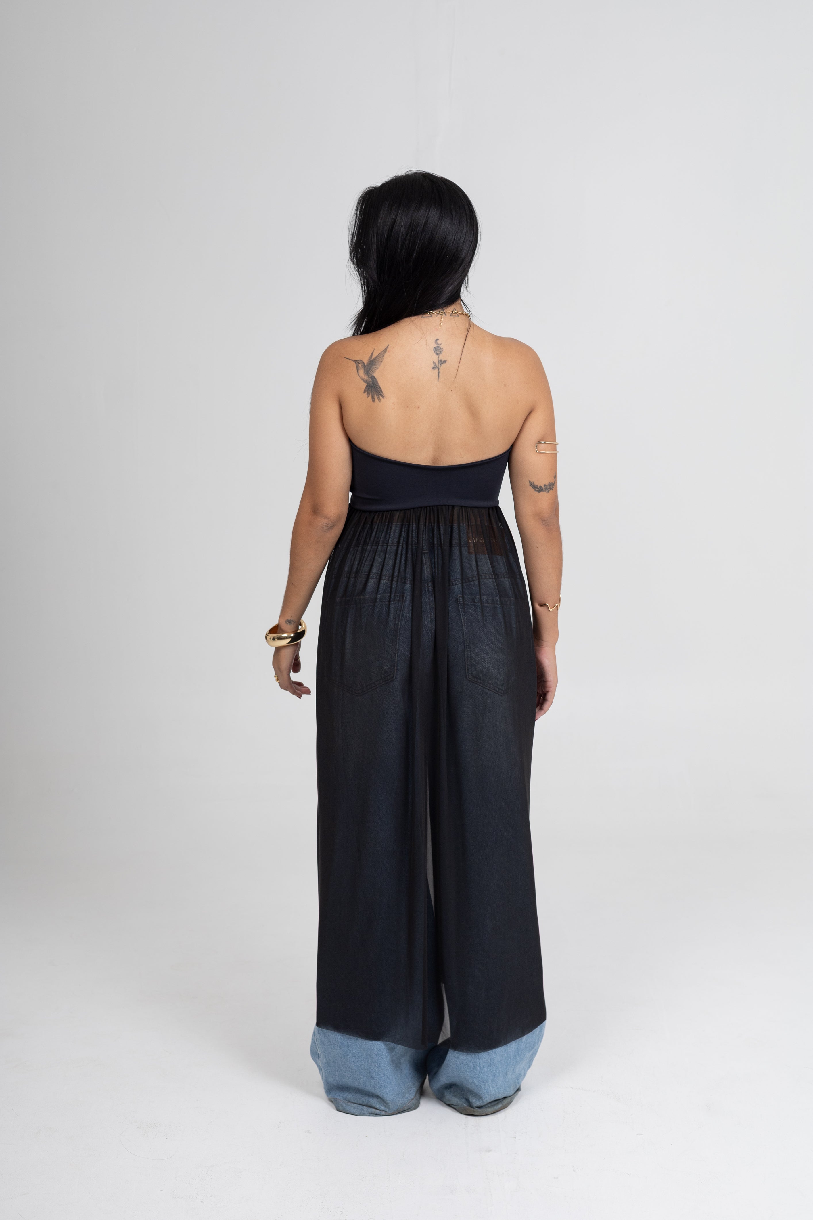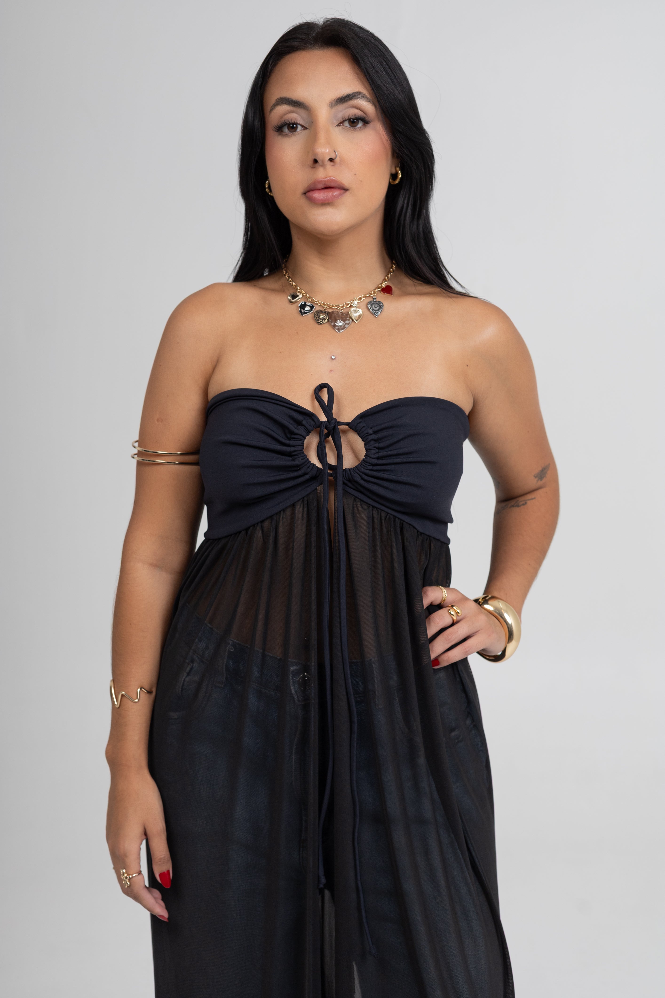 A Bata Tule é uma peça ideal para composições sofisticadas de verão. Com design leva que caia e caimento fluido, ela combina transparência estratégica no comprimento com sustentação perfeita no busto graças ao forro interno em poliamida com elastano.